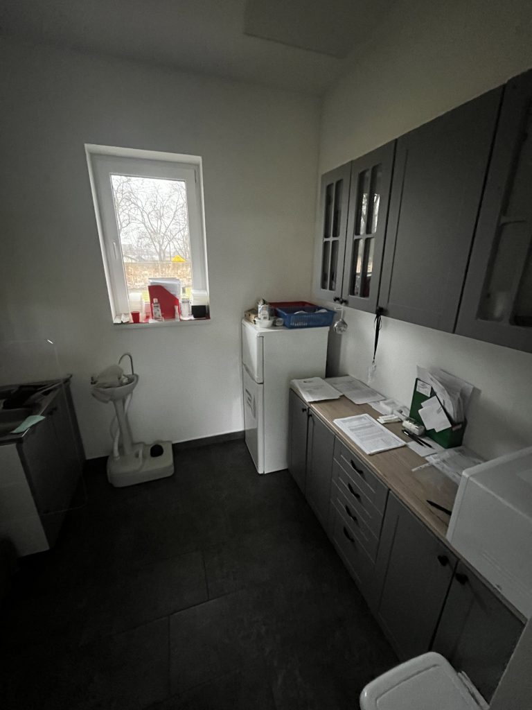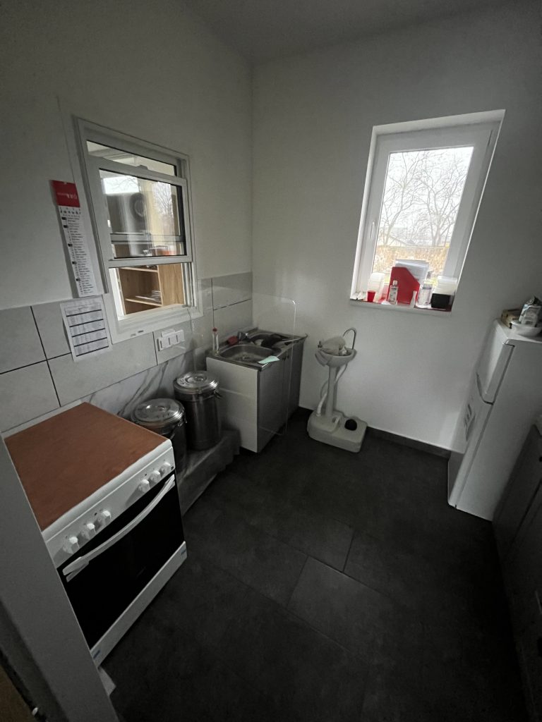 Az ingatlanban található konyha is, amely fel van szerelve hűtővel és villamos tűzhellyel.